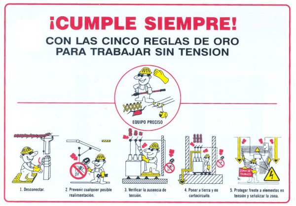 Recordamos en este momento que el incumplimiento de tan sólo una de las reglas de oro no garantiza el trabajo sin tensión, lo cual supondría asumir riesgos eléctricos inadmisibles e innecesarios por la gravedad del riesgo al que nos expone. Por tanto, el mensaje no puede ser otro que: